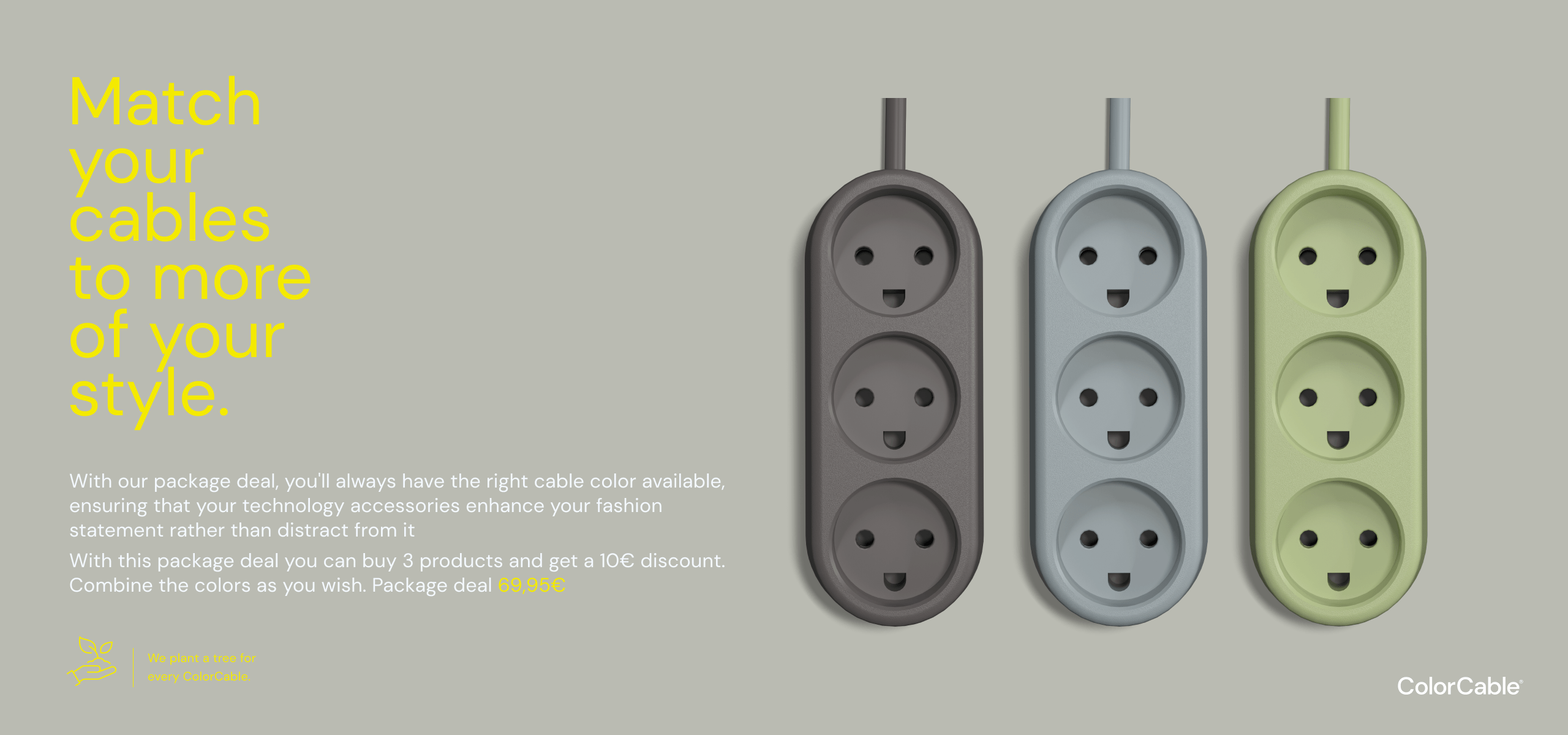 With our package deal, you'll always have the right cable color available, ensuring that your technology accessories enhance your fashion statement rather than distract from it With this package deal you can buy 3 products and get a 10€ discount. Combine the colors as you wish. Package deal 69,95€